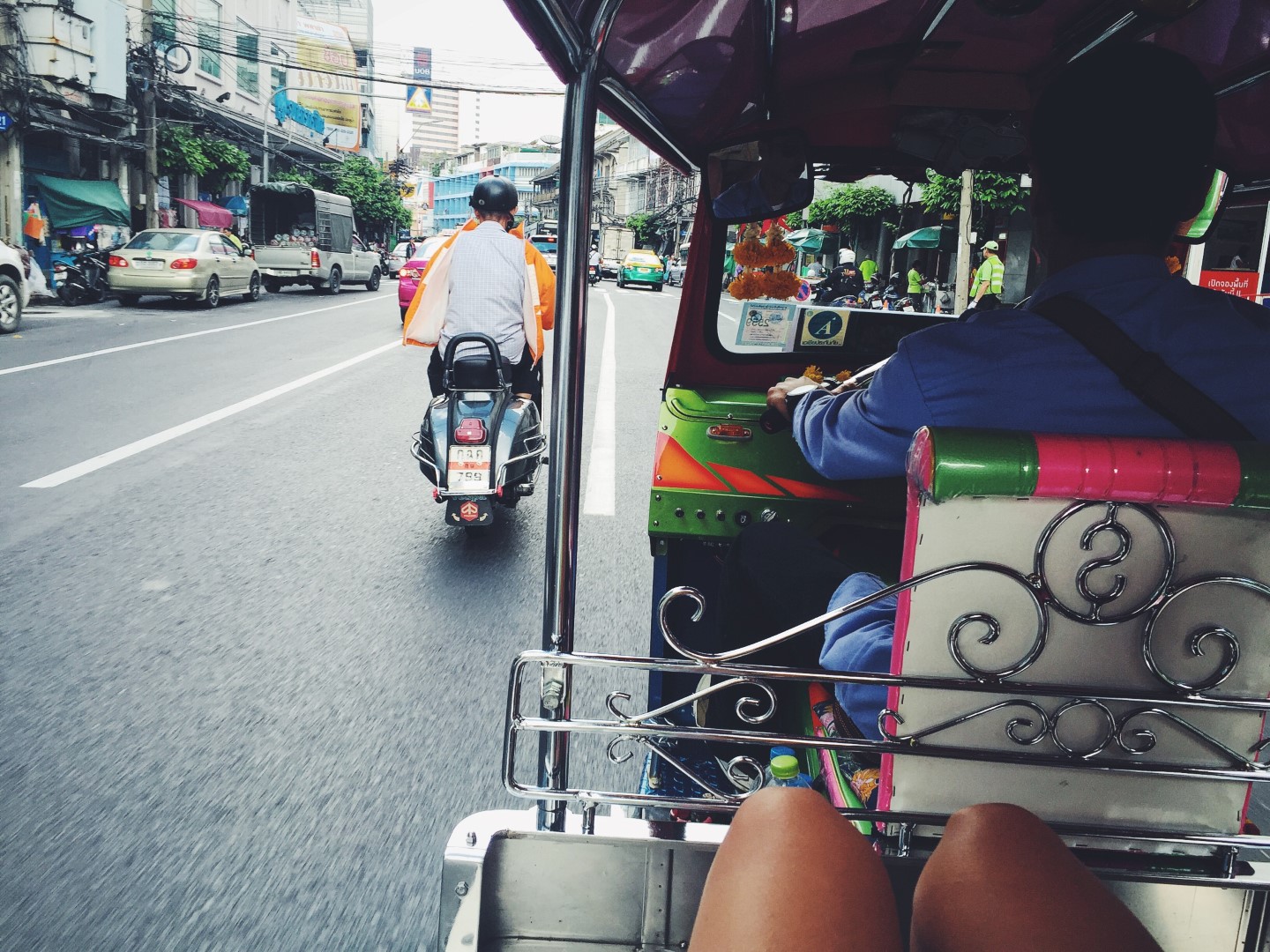 Um sich in der Millionen Metropole und Hauptstadt Thailands fortzubewegen ist man auch wieder relativ viel mit dem Tuk Tuk unterwegs. Irgendwann ist es tatsächlich eine Gewöhnungssache und man ist damit einfach auch wirklich schnell und günstig unterwegs, denn bei den dichten Verkehr auf den Straßen gibt es nicht einen Tag ohne Stau.