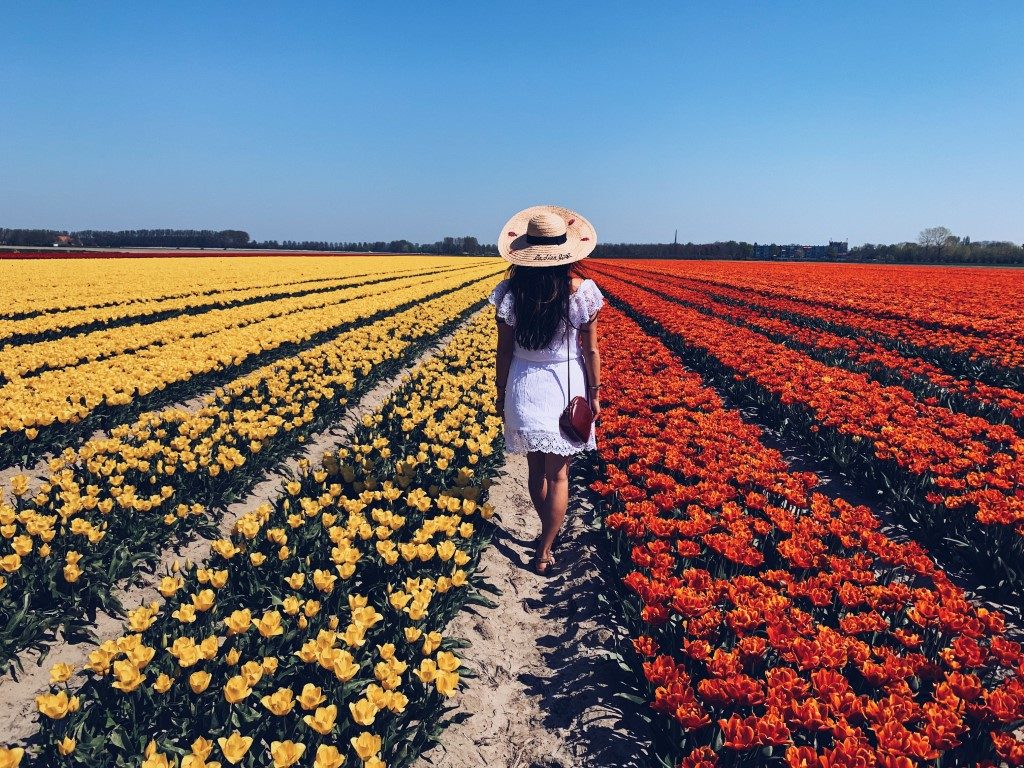 In Dirksland gehe ich zwischen den Tulpenfeldern spazieren und genieße die leuchtenden Farben.
